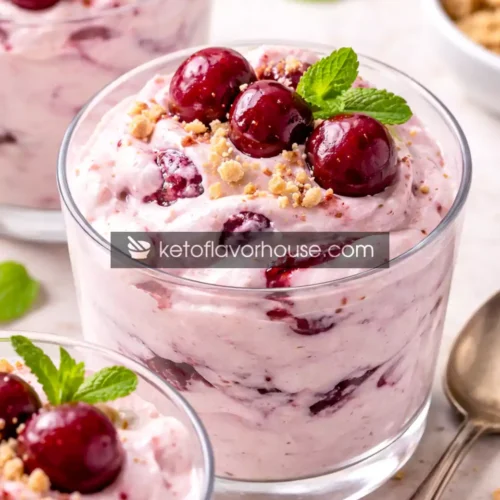 Add 1–2 tablespoons of unsweetened cocoa powder to the cheesecake base before folding in cherries. Chocolate and cherry pair beautifully, and the result tastes like a Black Forest–style cheesecake while staying keto-friendly.