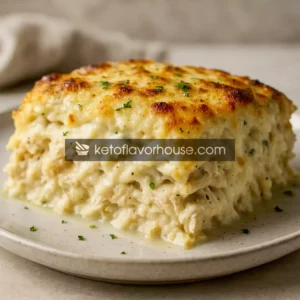 From the first bite, I knew this was the kind of recipe that deserved to be shared on KetoFlavorHouse. This High-Protein Creamy Alfredo Lasagna captures everything I love about traditional lasagna — the layers, the comfort, the satisfaction — but in a way that aligns beautifully with high-protein, keto-friendly living. The chicken adds lean, complete protein; the Alfredo sauce adds creaminess; the cheese gives every bite that stretchy, melty goodness; and the low-carb layering keeps it light enough to enjoy any day of the week.