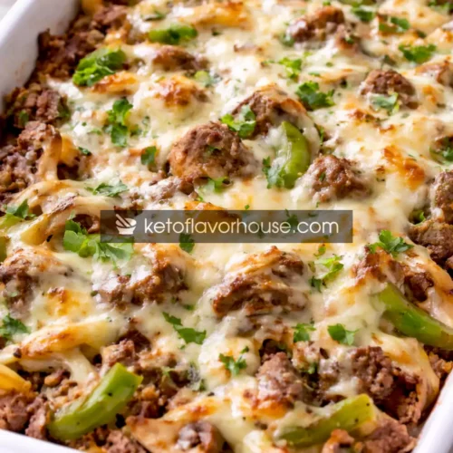 The first time I made this casserole, I remember thinking it would be “good enough.” I didn’t expect it to truly replace the comfort of a traditional cheesesteak-style dish. But once it came out of the oven — bubbling slightly around the edges, cheese melted just enough — I knew I had something special.